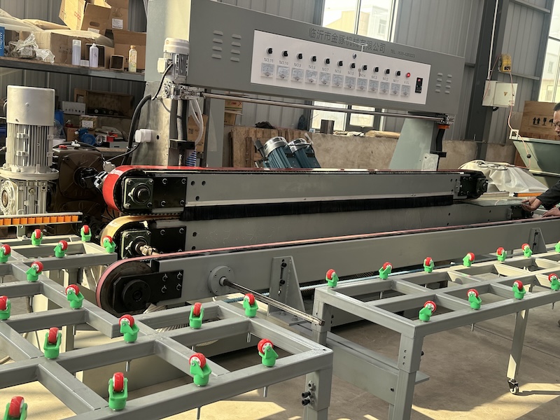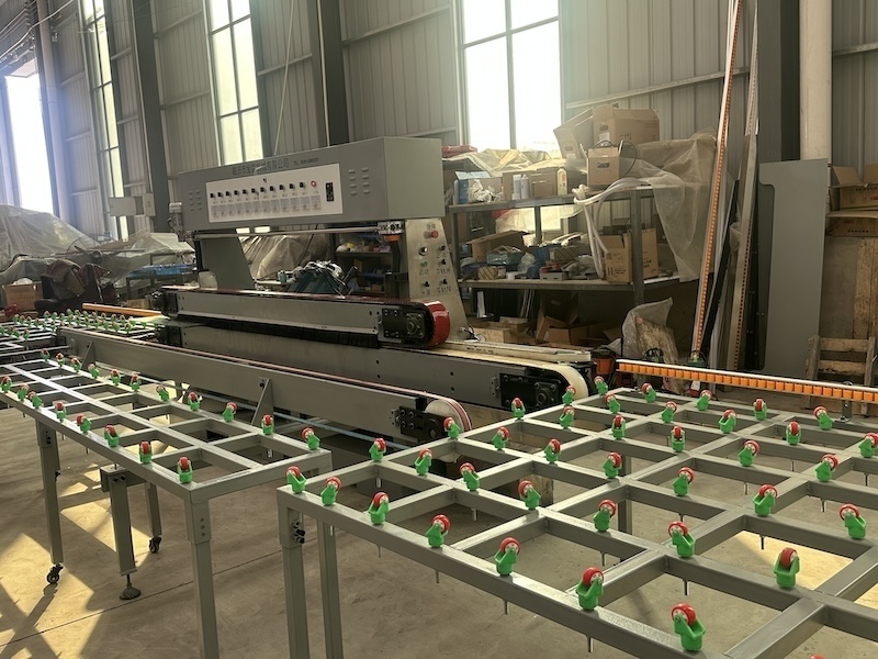 Glass straight edger is used to grind and polish glass with various size and thickness .Motors are fit on movable platform move together with front beam.Grinding and polishing of bevel and grinding of bottom edge can be completed in one time. There are two options manual and automatic operation. it can be controlled in PLC automatically with touch screen which can set parameters.The front pads can be added for fine grinding, two pneumatic polishing and one bottom grinding ,all can be completed in one procession. The speed of driving can be adjusted by step less reducer which can adjust at random during available speed range.The speed is adjustable with step less motor,high precision ,easy operation.